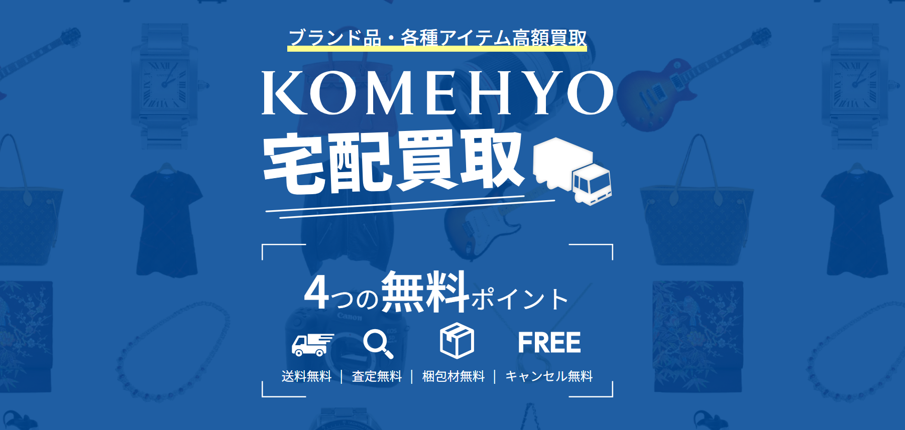 KOMEHYOは、名古屋を拠点に全国に実店舗を展開する日本最大級のリユースデパートです。ブランドバッグや高級時計、ジュエリー、アパレル、カメラ、楽器など、幅広いジャンルの買取・販売を行っています。