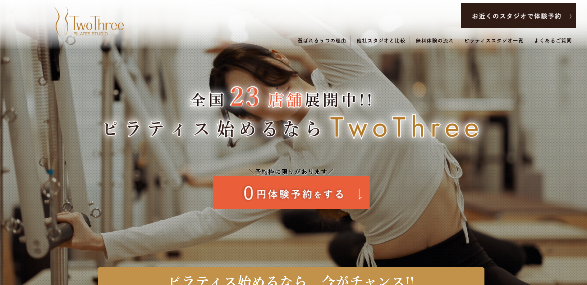 ツースリーピラティスは、全国で急成長しているマシンピラティスブランドのひとつ。